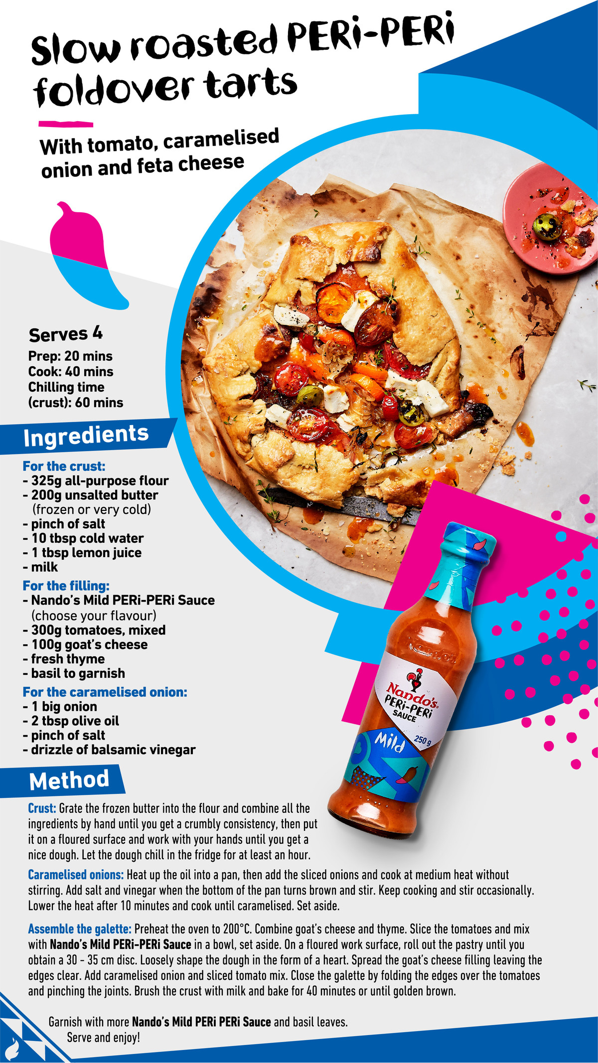 Garnish with more Nando’s Mild PERi PERi sauce and basil leaves. Serve and enjoy!